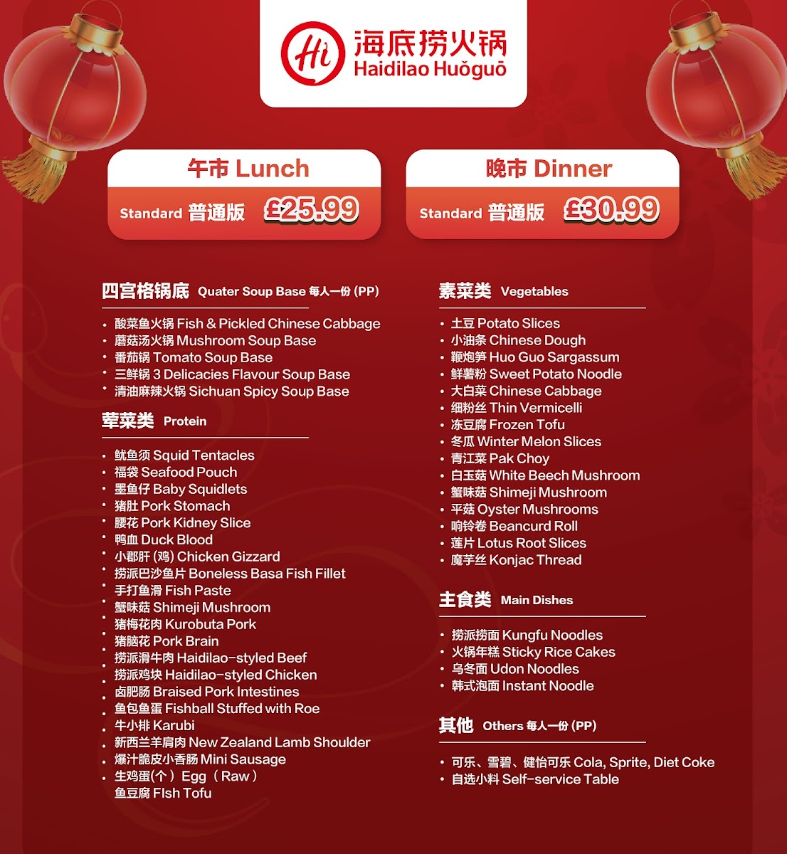 Haidilao Hot Pot Birmingham (next to St. Martin's Church) Menu (2025 Update)